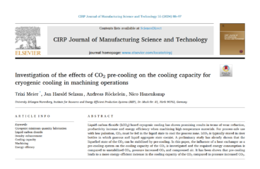 Wir freuen uns, die Veröffentlichung unserer neuesten Forschungsergebnisse im CIRP Journal of Manufacturing Science and Technology bekanntzugeben. In der Arbeit mit dem Titel „Investigation of the effects of CO2 pre-cooling on the cooling capacity for cryogenic cooling in machining operations“ untersuchen Trixi Meier, Jan Harald Selzam, Andreas Röckelein und Nico Hanenkamp die Auswirkungen einer CO2-Vorkühlung auf die Kühlkapazität bei kryogenen Kühlverfahren während der Zerspanung.