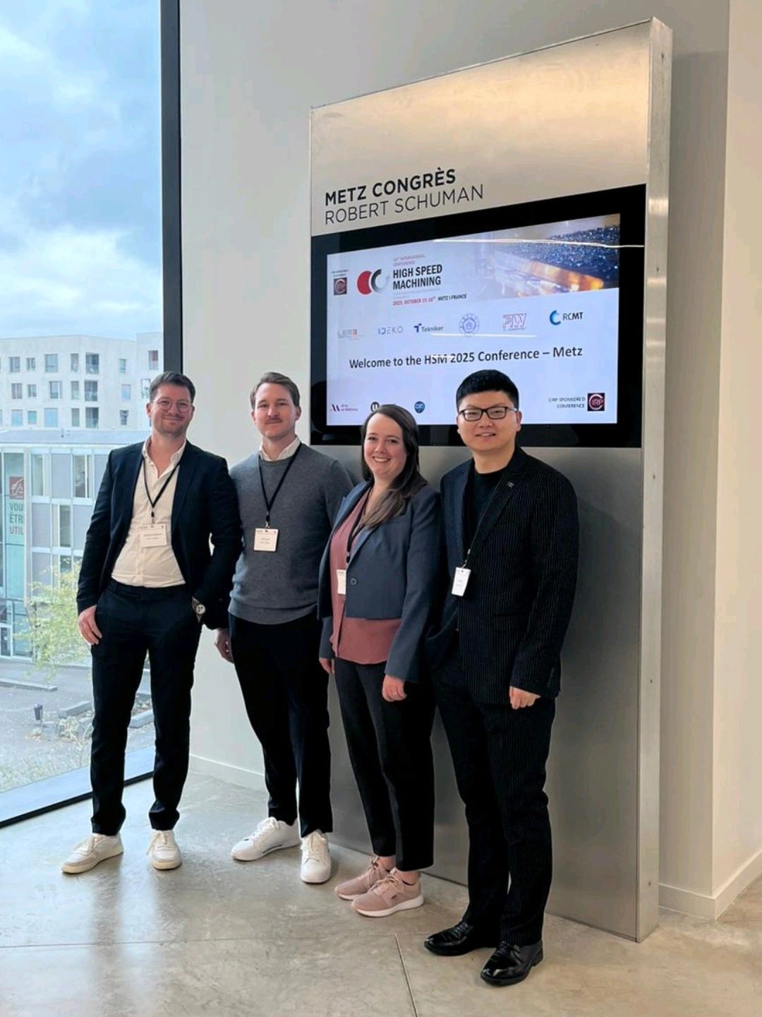 Das Team des Lehrstuhls für Ressourcen- und Energieeffiziente Produktionssysteme nahm an der International Conference on High Speed Machining (HSM 2025) in Metz, Frankreich, teil. Die renommierte Fachkonferenz vereinte Expertinnen und Experten aus Wissenschaft und Industrie, um aktuelle Entwicklungen in den Bereichen Hochleistungszerspanung, hybride Fertigung, Werkzeugtechnologien und Produktionssysteme zu diskutieren.